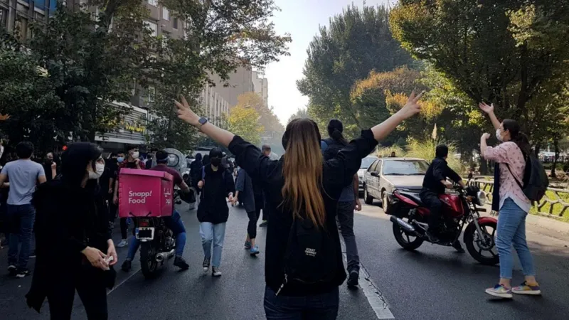 تظاهرات در خیابانی در تهران، بیش از ۵۰ روز است که شهرهای مختلف ایران شاهد تظاهرات ضد حکومتی است |